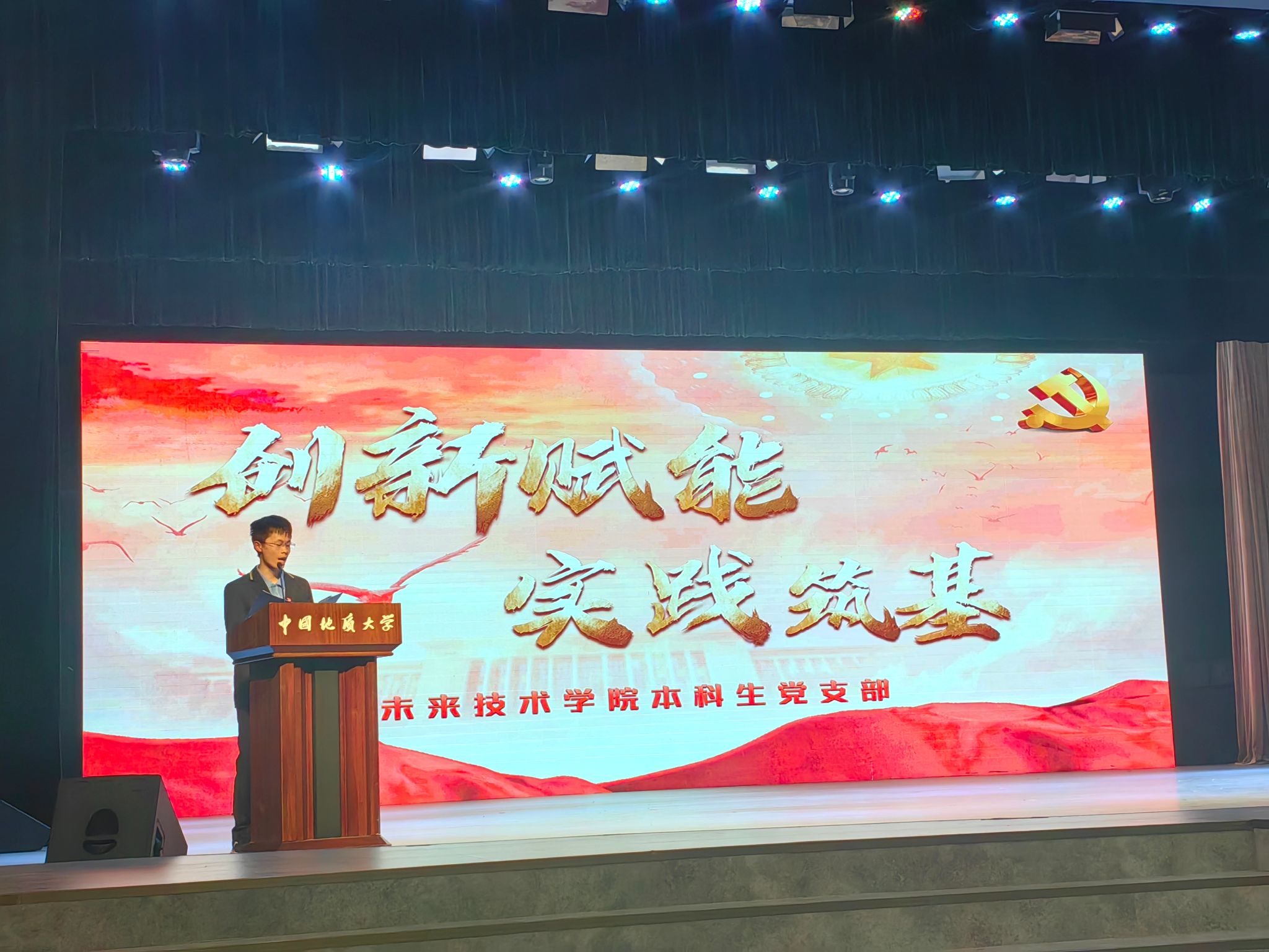 在支部风采展示环节,支部书记吴远丰以“创新赋能,实践筑基”为题,介绍了未来技术学院本科生党支部立足“地球科学+人工智能”的学院特色,通过“思想铸魂、实践赋能、创新致远”三位一体路径,建设学习型、服务型、创新型支部,引领支部成员成长的特色做法。支部通过制作“青声习语”微党课,每年组建专题社会实践团队,充分利用武汉市及周边红色景点开展主题实践活动加强思想引领;同时利用产学研实践机会、“探索与猜想计划”等学院平台,组织支部成员在实践中强化科技报国之志,在科创项目与高水平竞赛中提升综合素质,引领成员怀“红色心”、练“硬核功”,书写科技报国青春篇章。